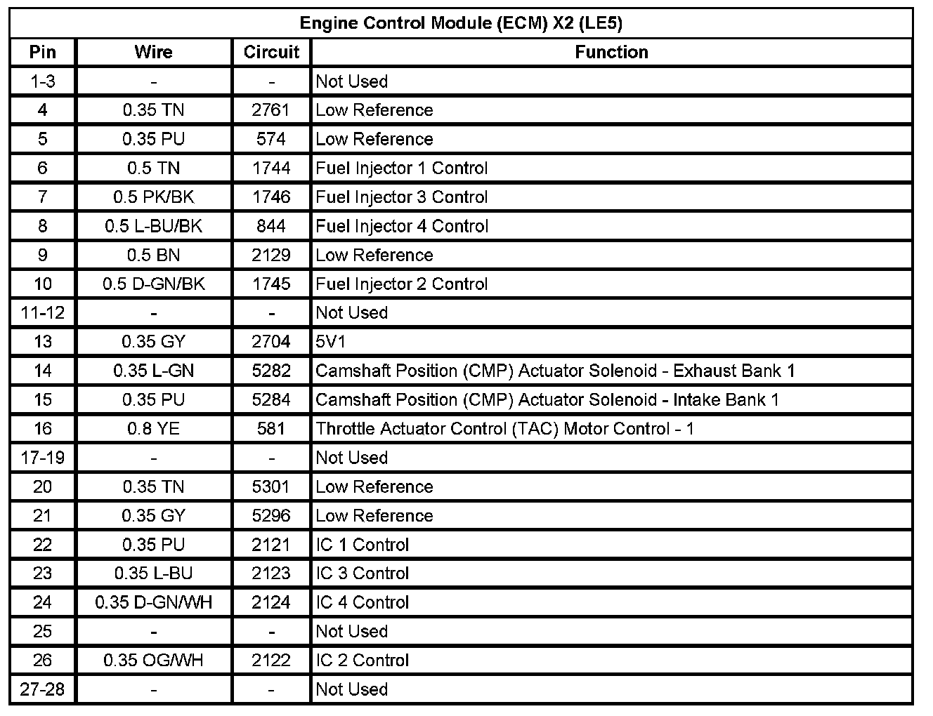 Engine Control Module (ECM) X2 (LE5) (Pin 1 To 28):