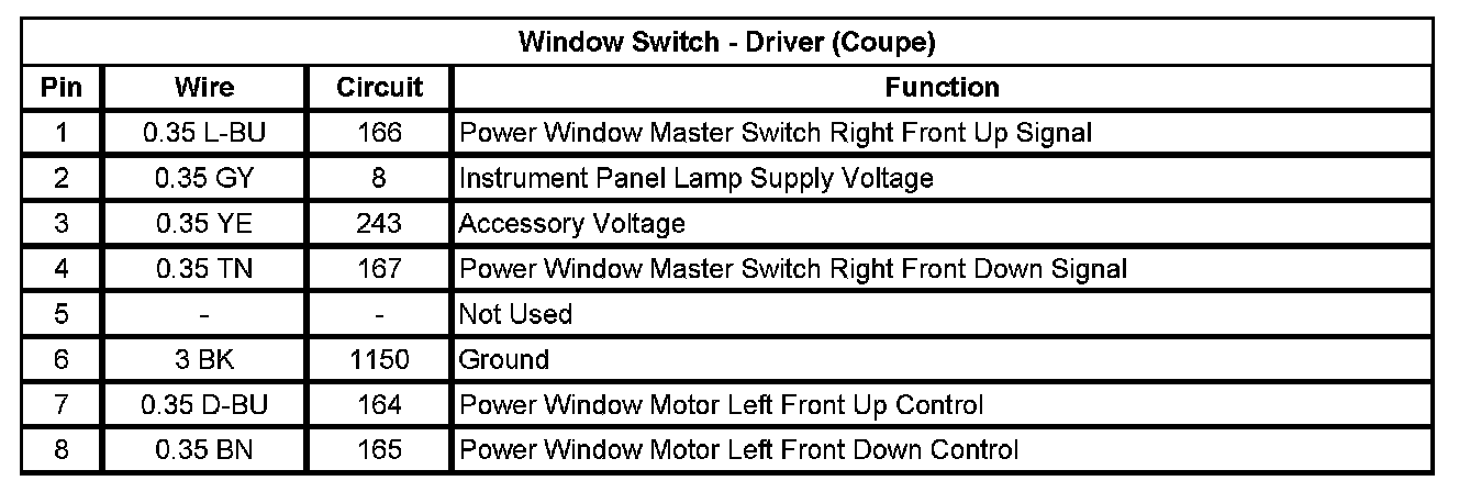 Window Switch - Driver (Coupe)