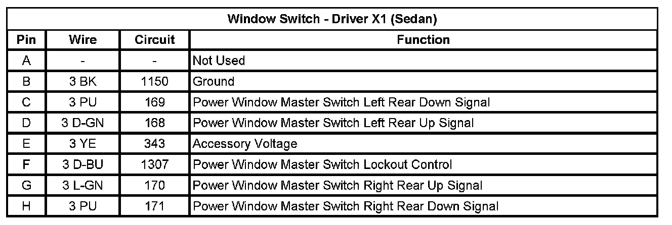 Window Switch - Driver X1 (Sedan)