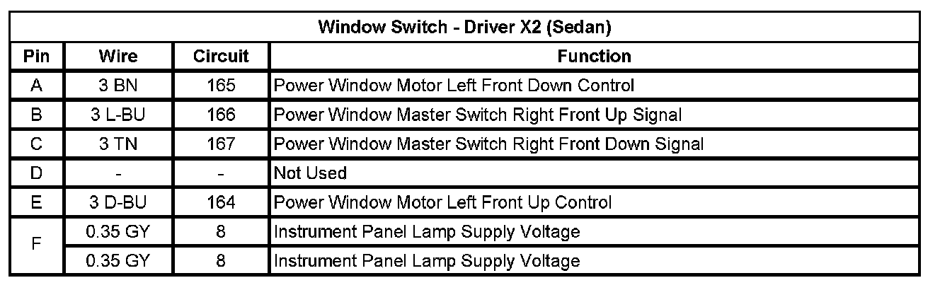 Window Switch - Driver X2 (Sedan)