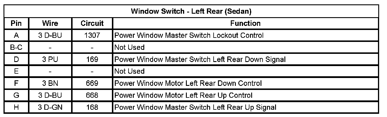 Window Switch - Left Rear (Sedan)