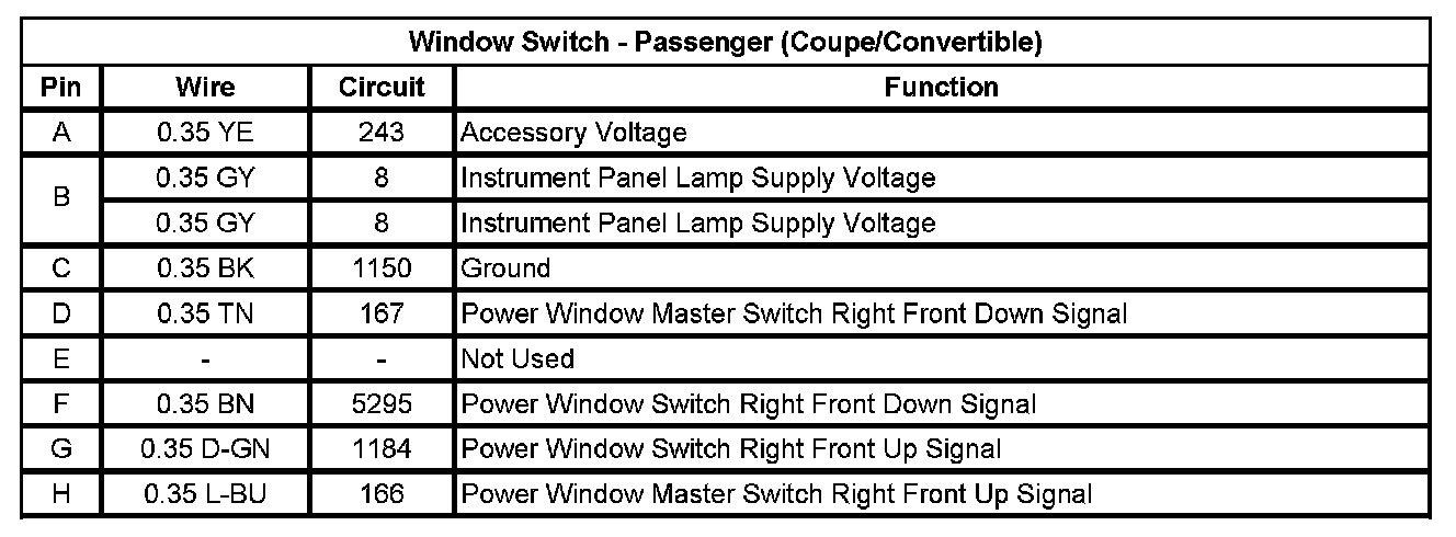 Window Switch - Passenger (Coupe/Convertible)