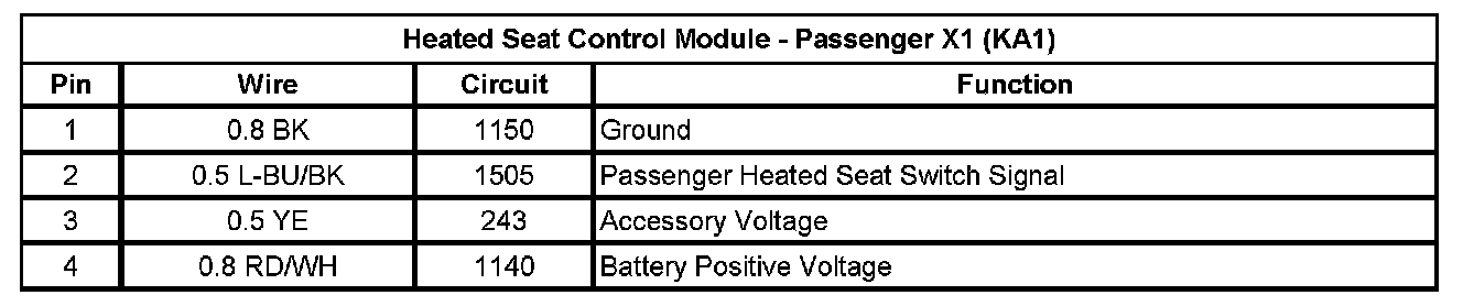 Heated Seat Control Module - Passenger X1 (KA1)