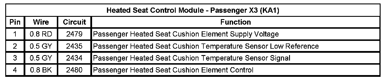 Heated Seat Control Module - Passenger X2 (KA1)
