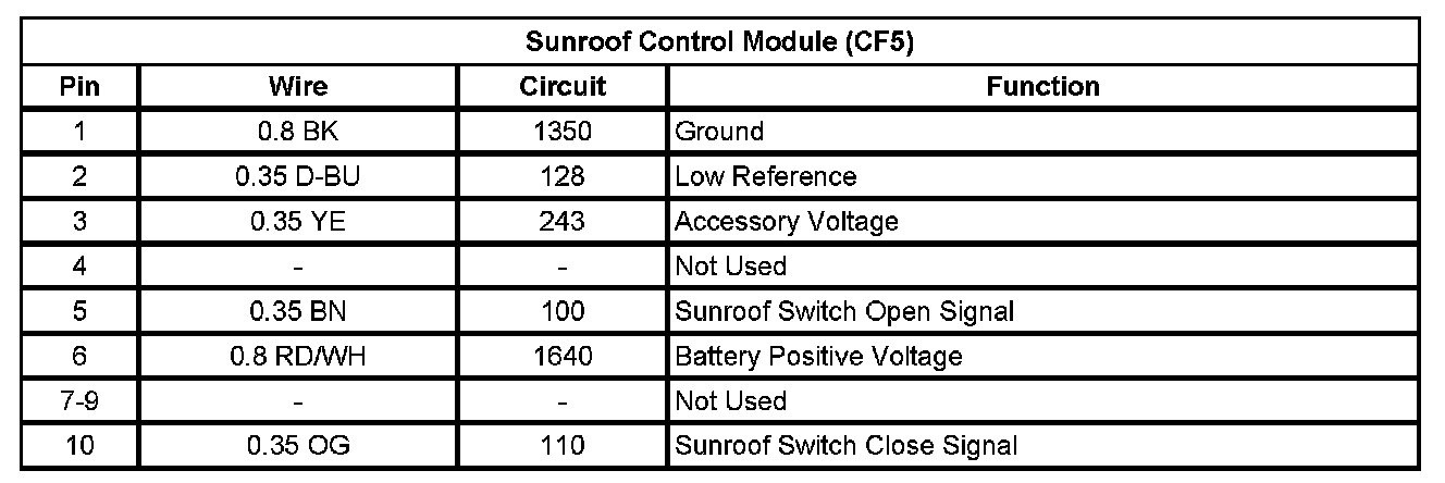 Sunroof Control Module (CF5)
