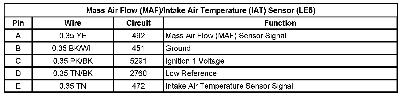 Mass Air Flow (MAF)/Intake Air Temperature (IAT) Sensor (LE5)