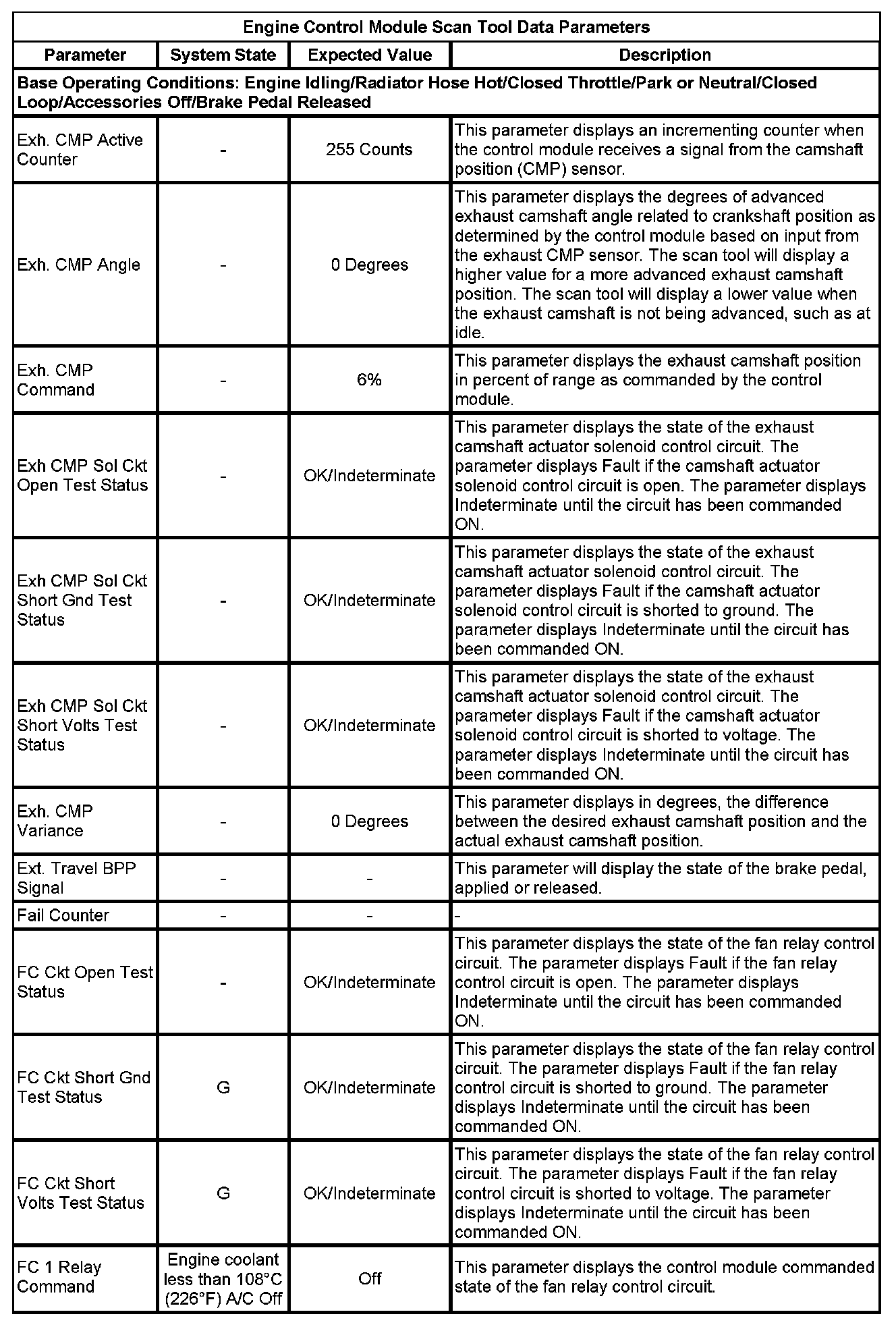 The Engine Control Module Scan Tool Data List contains all engine-related parameters that are available on the scan tool. The list is arranged in alphabetical order. A given parameter may appear in any one of the data lists, and in some cases may appear more than once, or in more than one data list in order to group certain related parameters together.