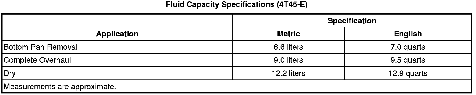 Fluid Capacity Specifications