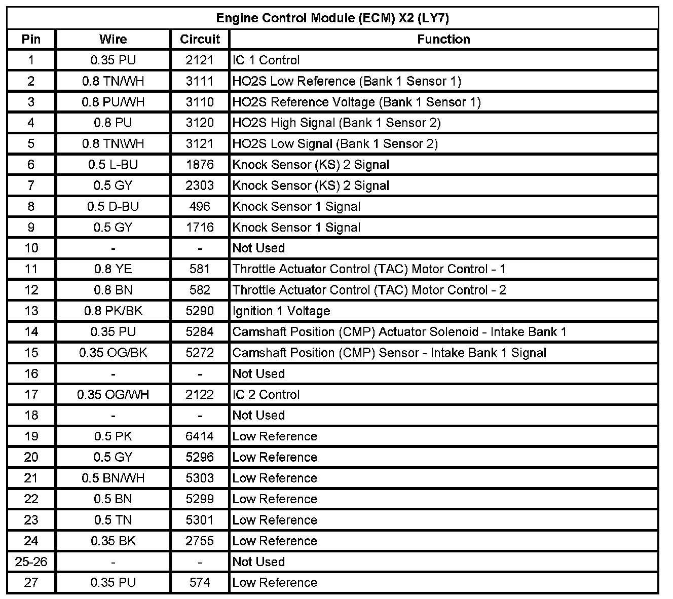 Engine Control Module (ECM) X2 (LY7) (Pin 1 To 27):