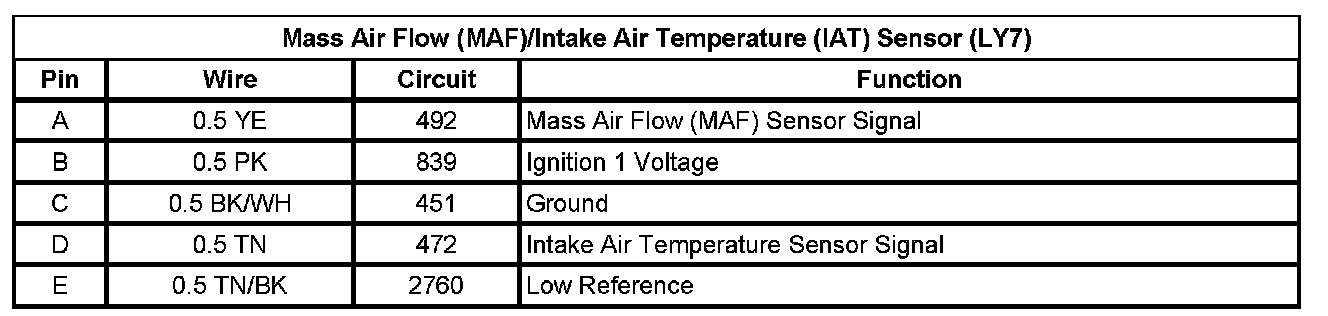 Mass Air Flow (MAF)/Intake Air Temperature (IAT) Sensor (LY7)