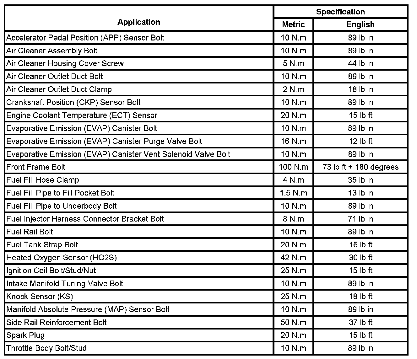 Fastener Tightening Specifications