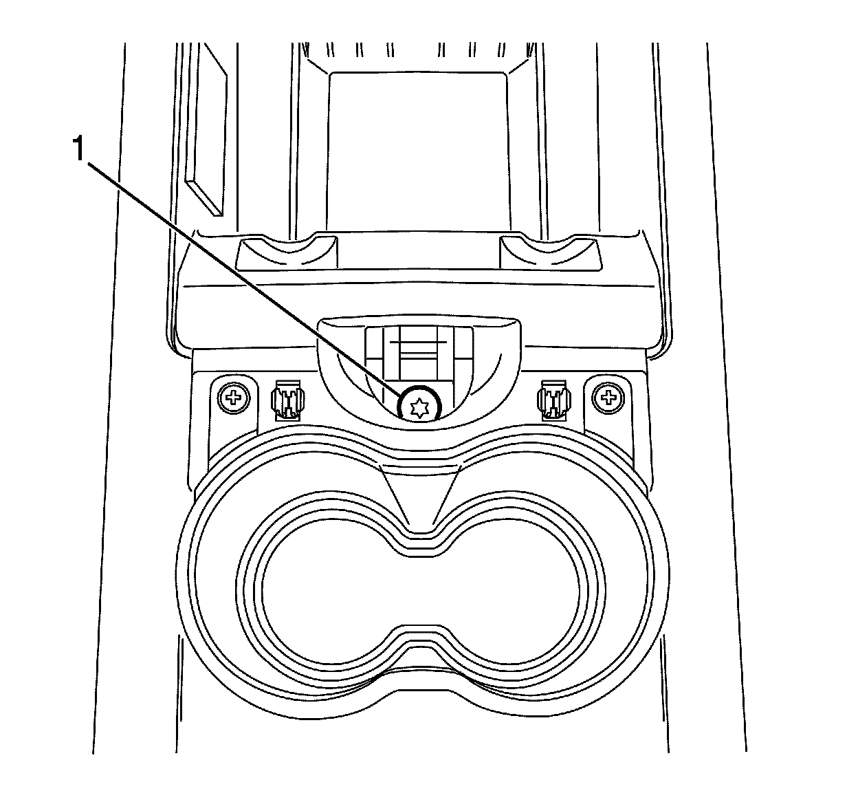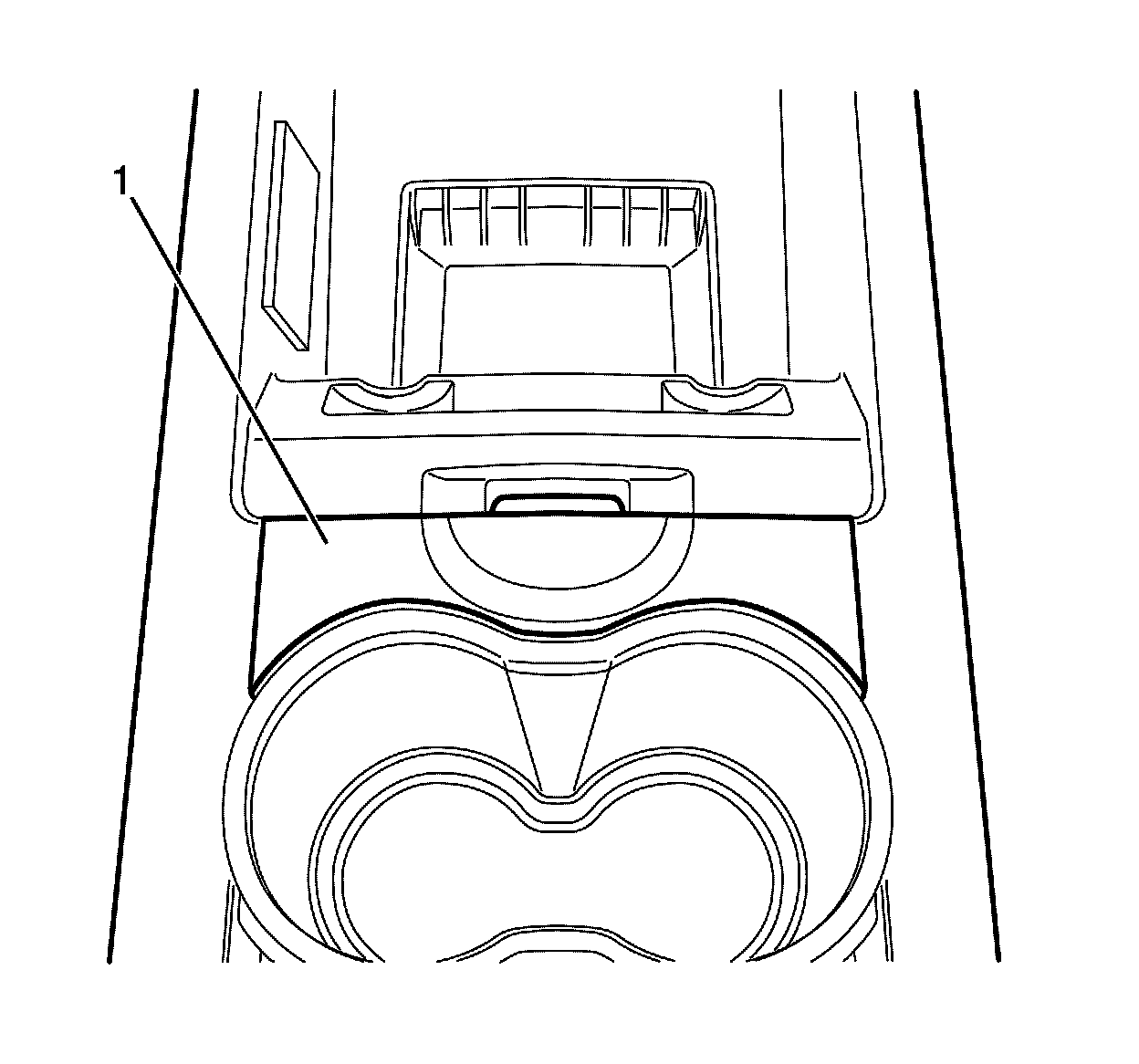 Important:The park brake cable adjustment bolt cover trim (1) is retained by two clips. Gently pry upwards with fingers at the front floor console armrest latch to remove.