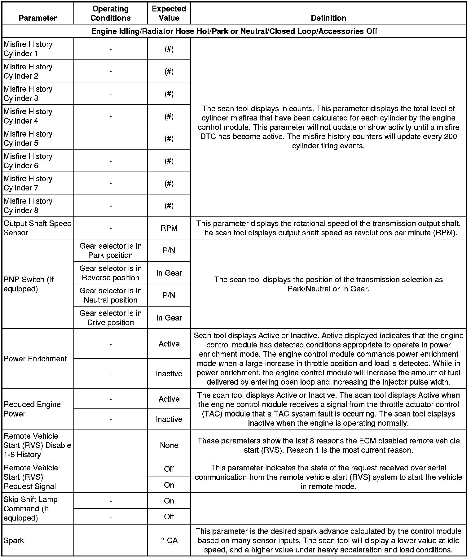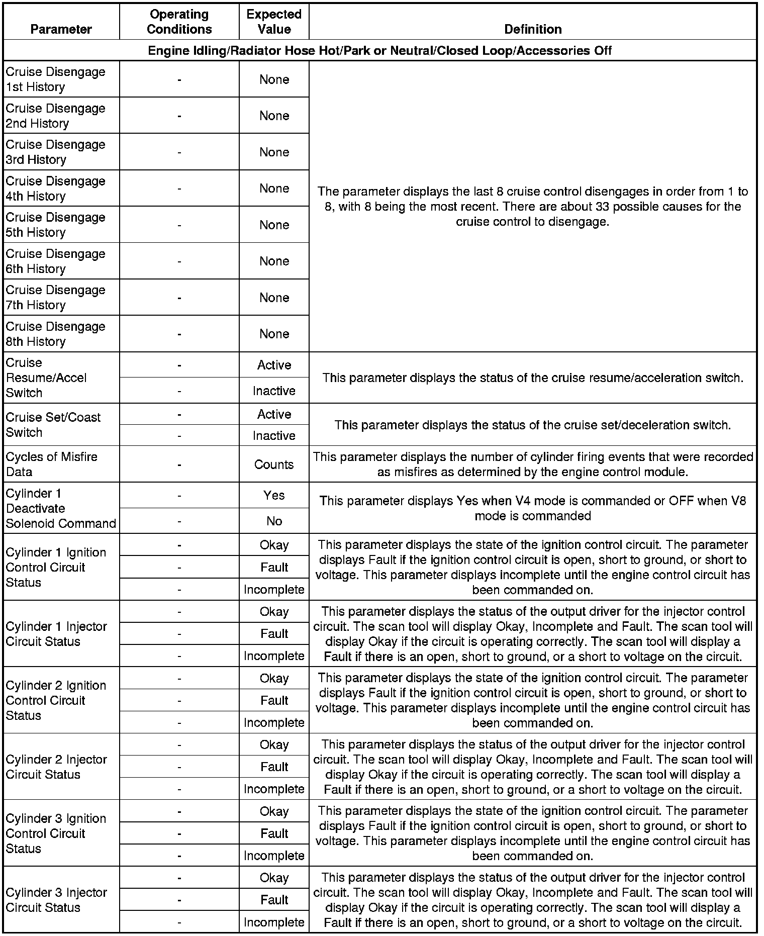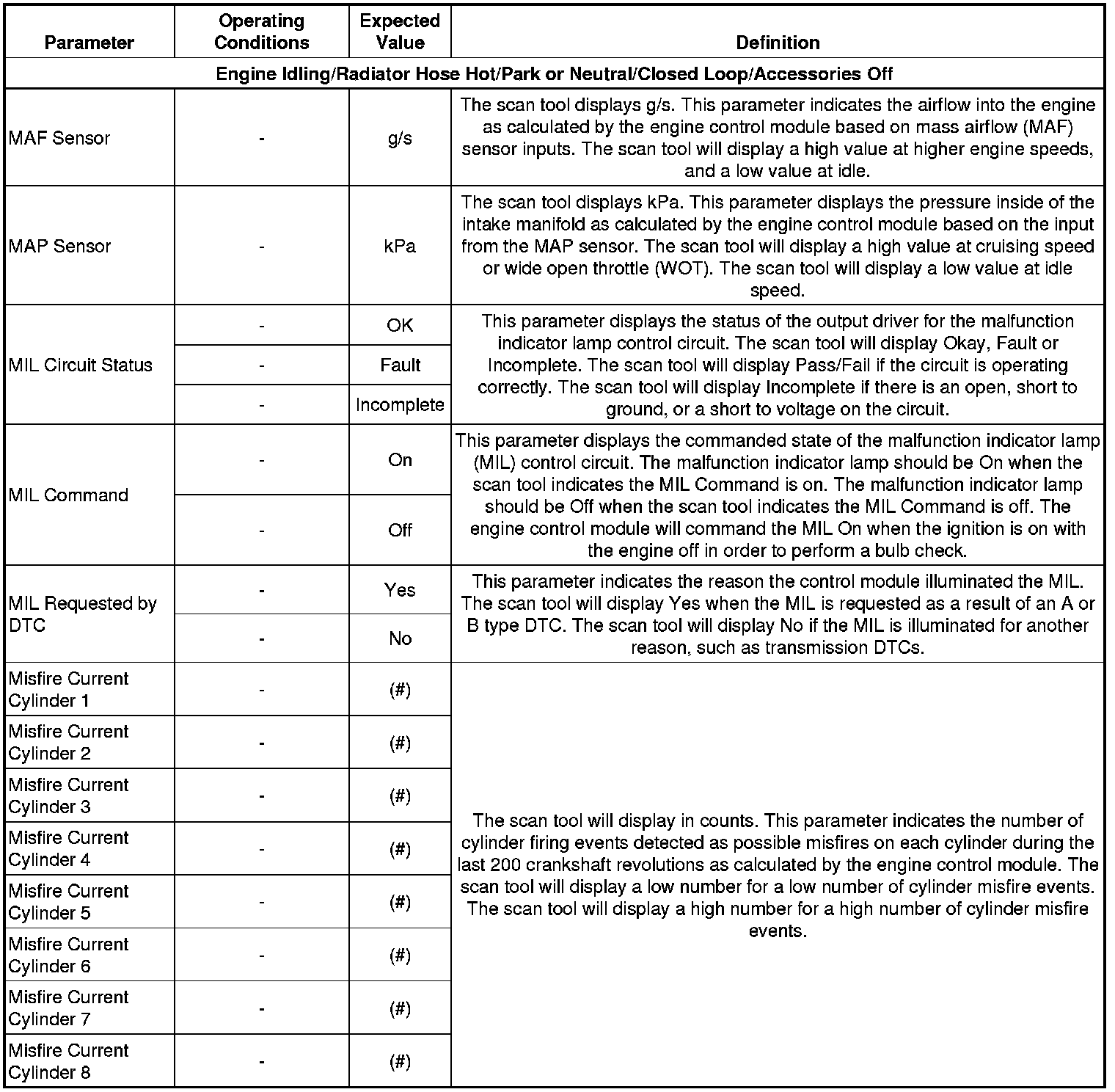 Only the parameters listed below are referenced in this service information for use in diagnosis. If all values are within the typical range described below, refer to Symptoms - Engine Controls (- Symptoms - Engine Controls) .