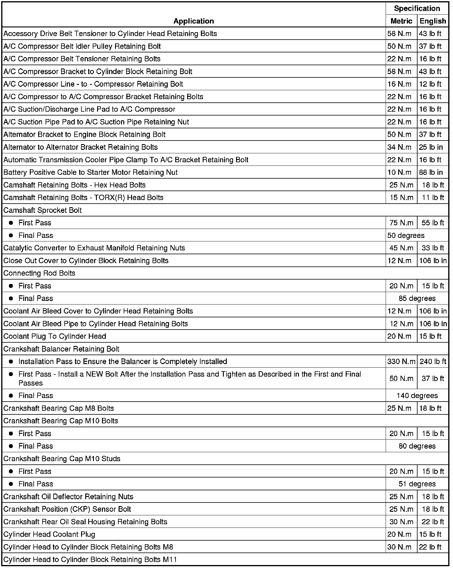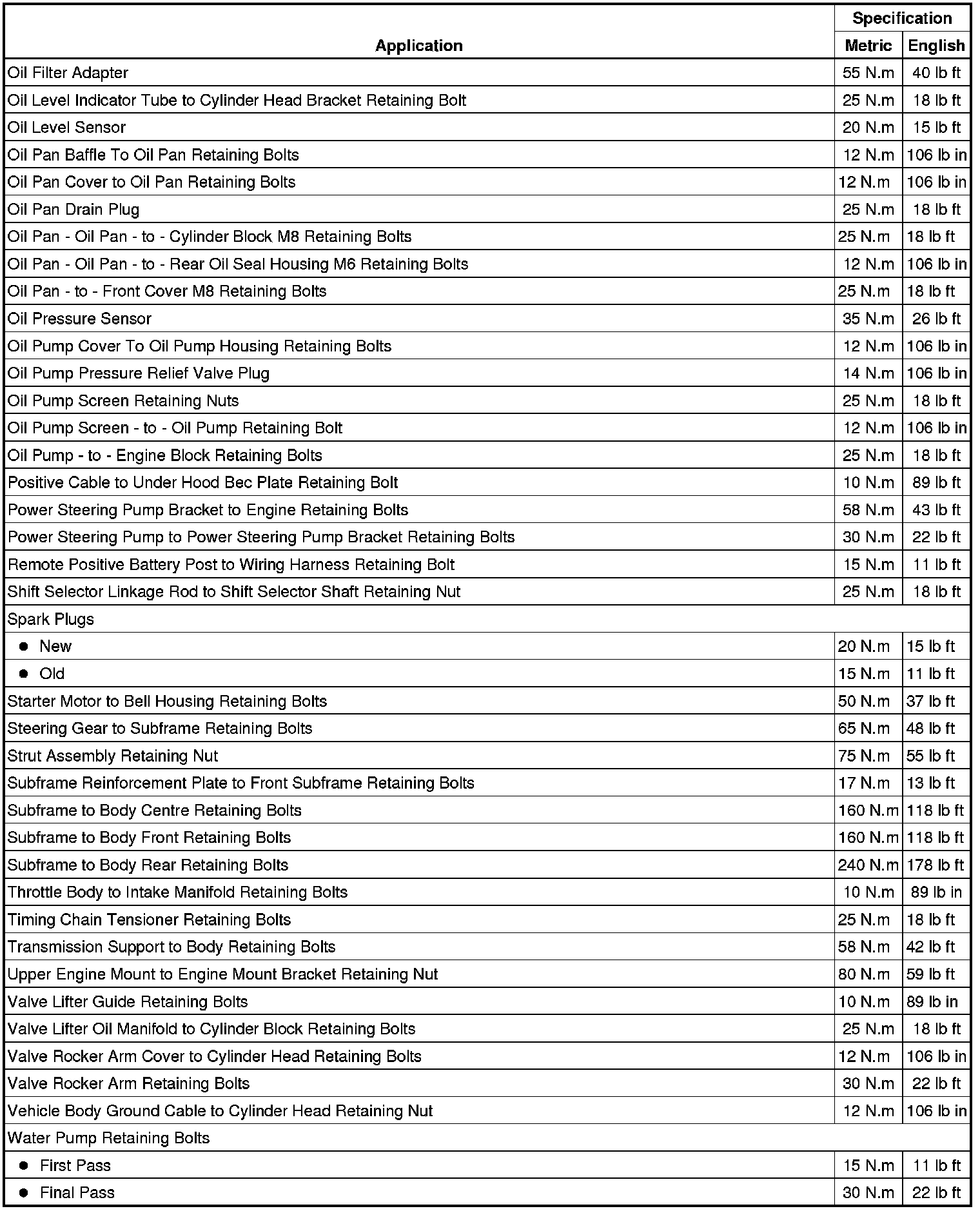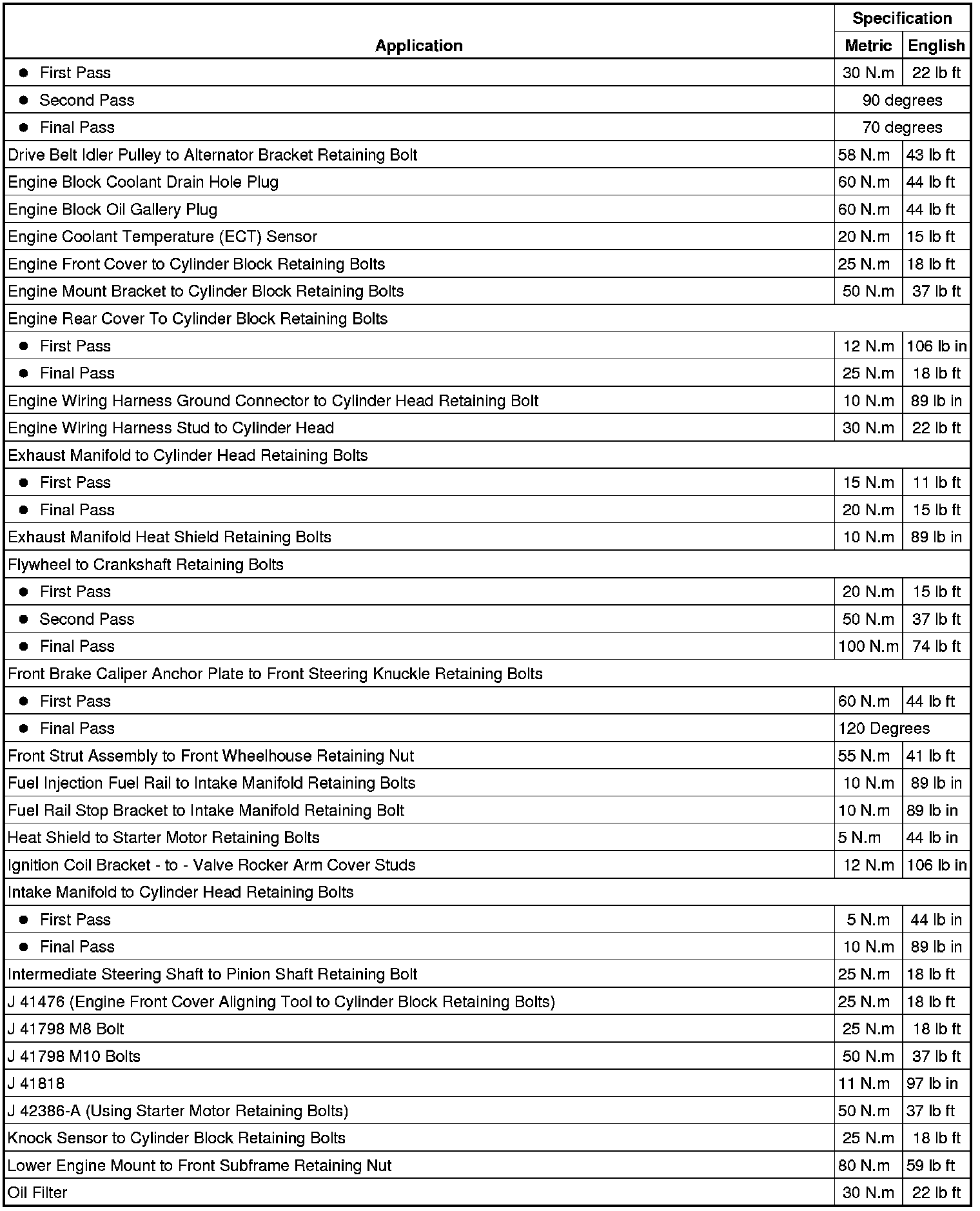 Fastener Tightening Specifications