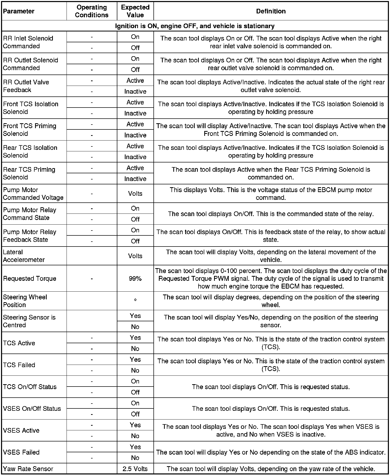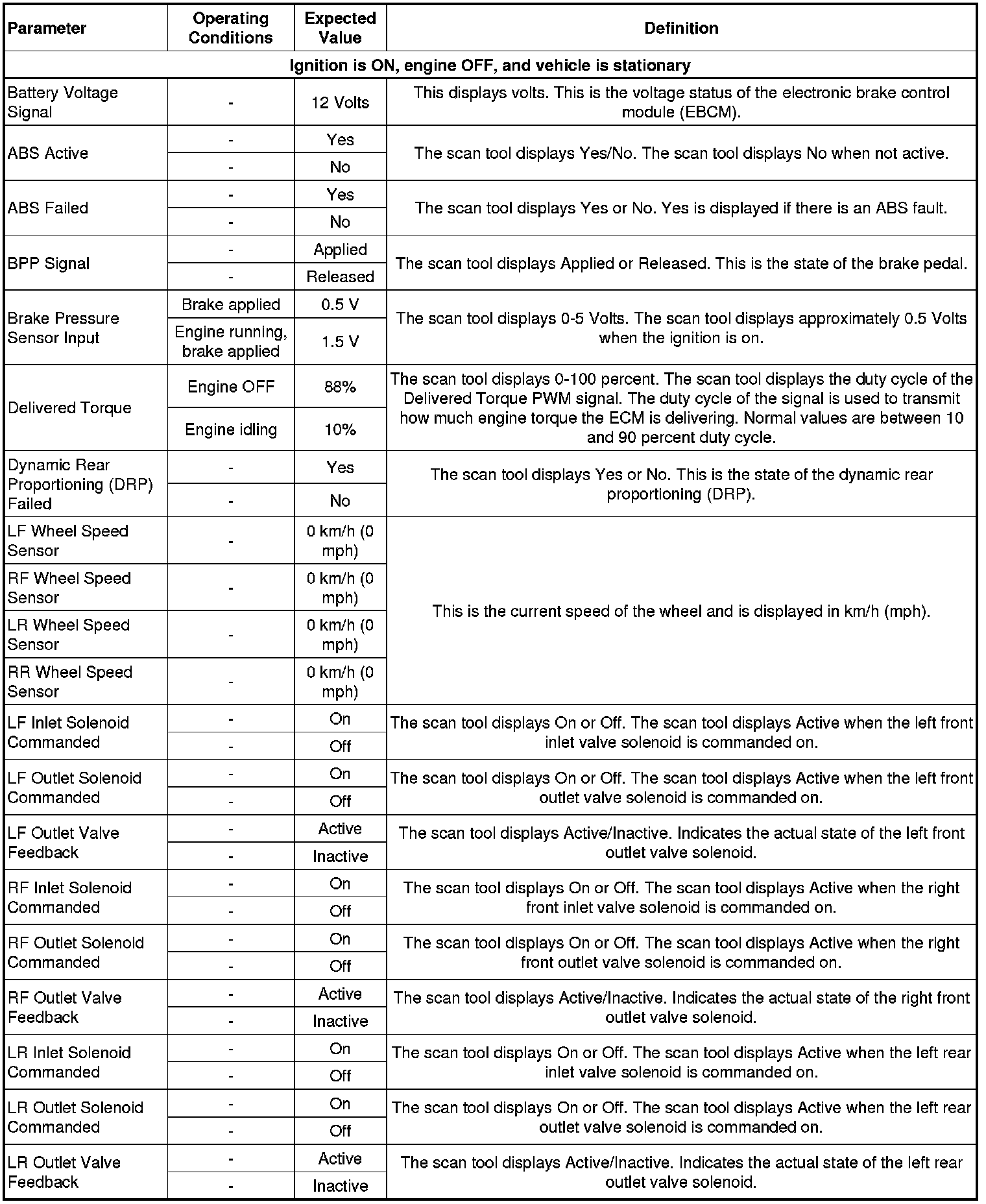 Scan Tool Data Parameters
