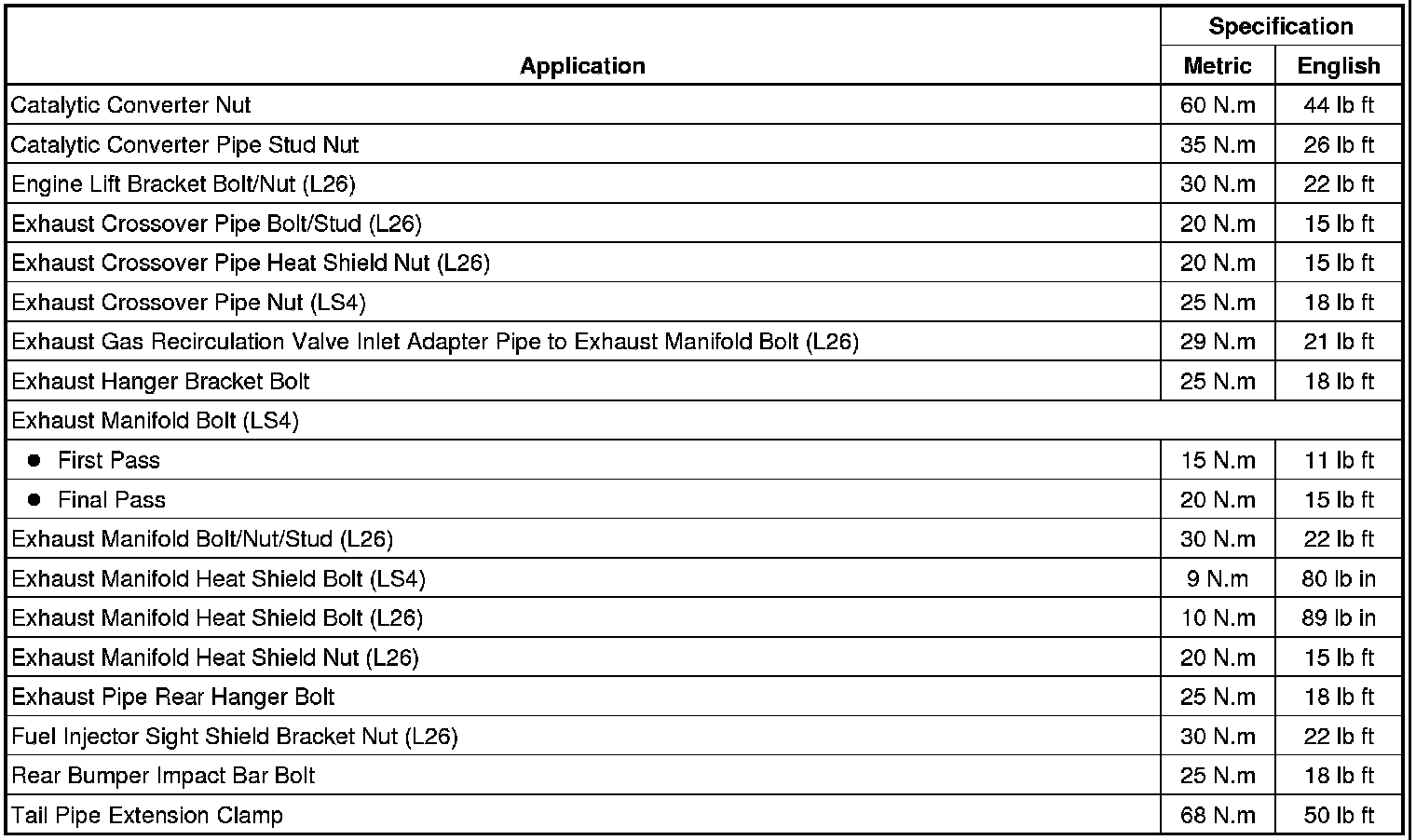 Fastener Tightening Specifications