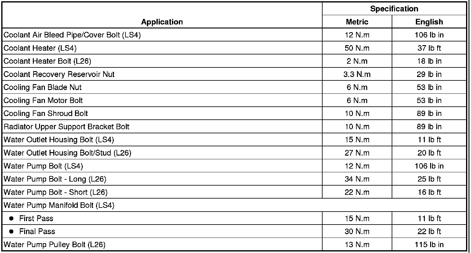 Fastener Tightening Specifications