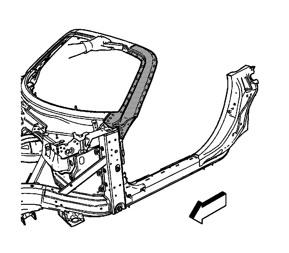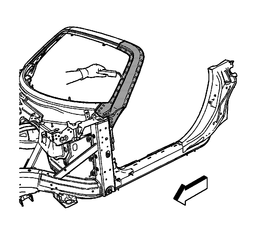 1.Position the windshield frame side panel to the vehicle. Use 3-dimensional measuring equipment to ensure fit. Clamp the panel into place.