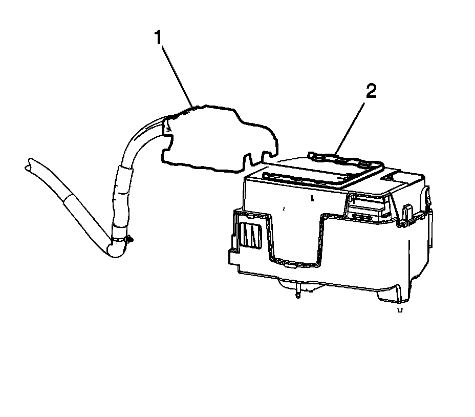 3. Install the ECM bracket (1) onto the air cleaner assembly cover (2) until it locks in place.