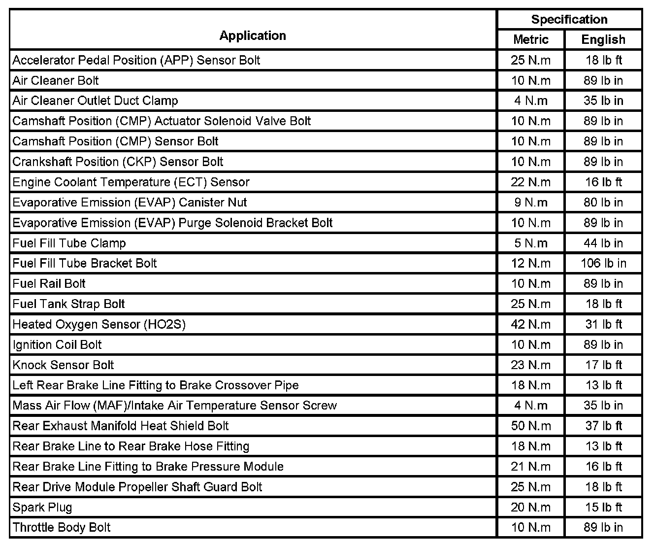 Fastener Tightening Specifications