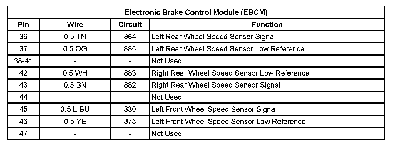 Electronic Brake Control Module (EBCM) (Pin 36 To 47):