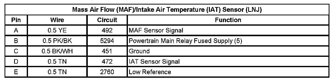 Mass Air Flow (MAF)/Intake Air Temperature (IAT) Sensor (LNJ)