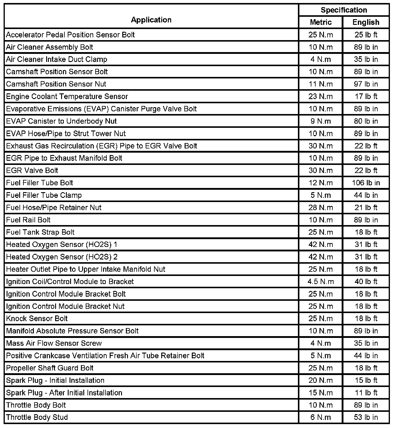 Fastener Tightening Specifications