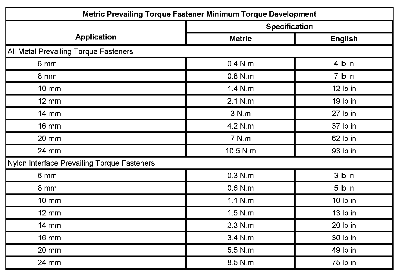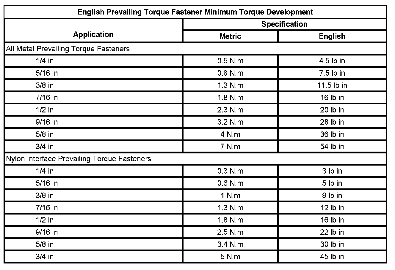 Prevailing Torque Fasteners