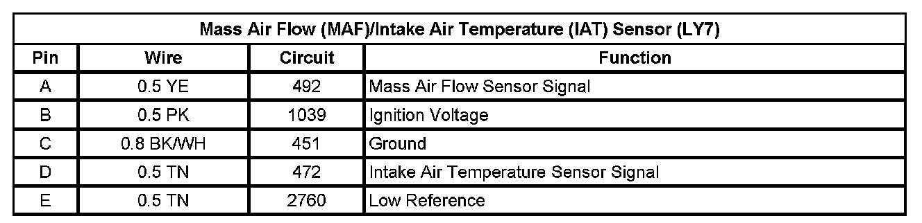 Mass Air Flow (MAF)/Intake Air Temperature (IAT) Sensor (LY7)