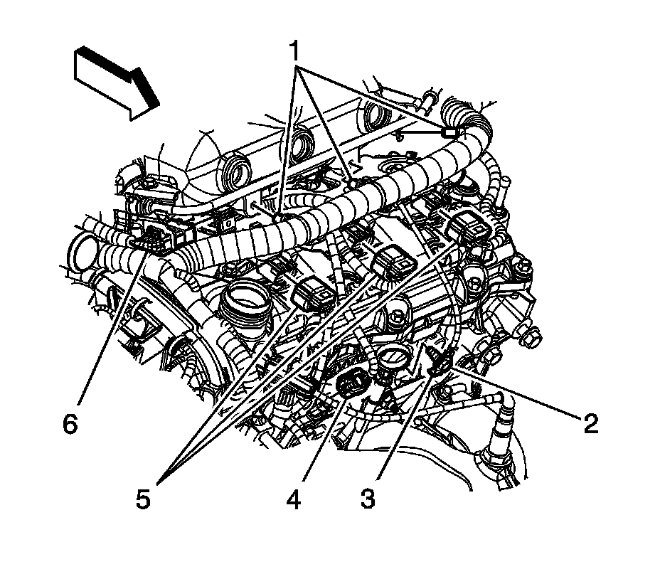 1. Disconnect the engine wiring harness electrical connector (4) from the engine coolant temperature (ECT) sensor.