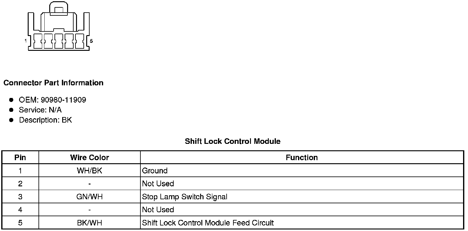 Shift Lock Control Connector End Views