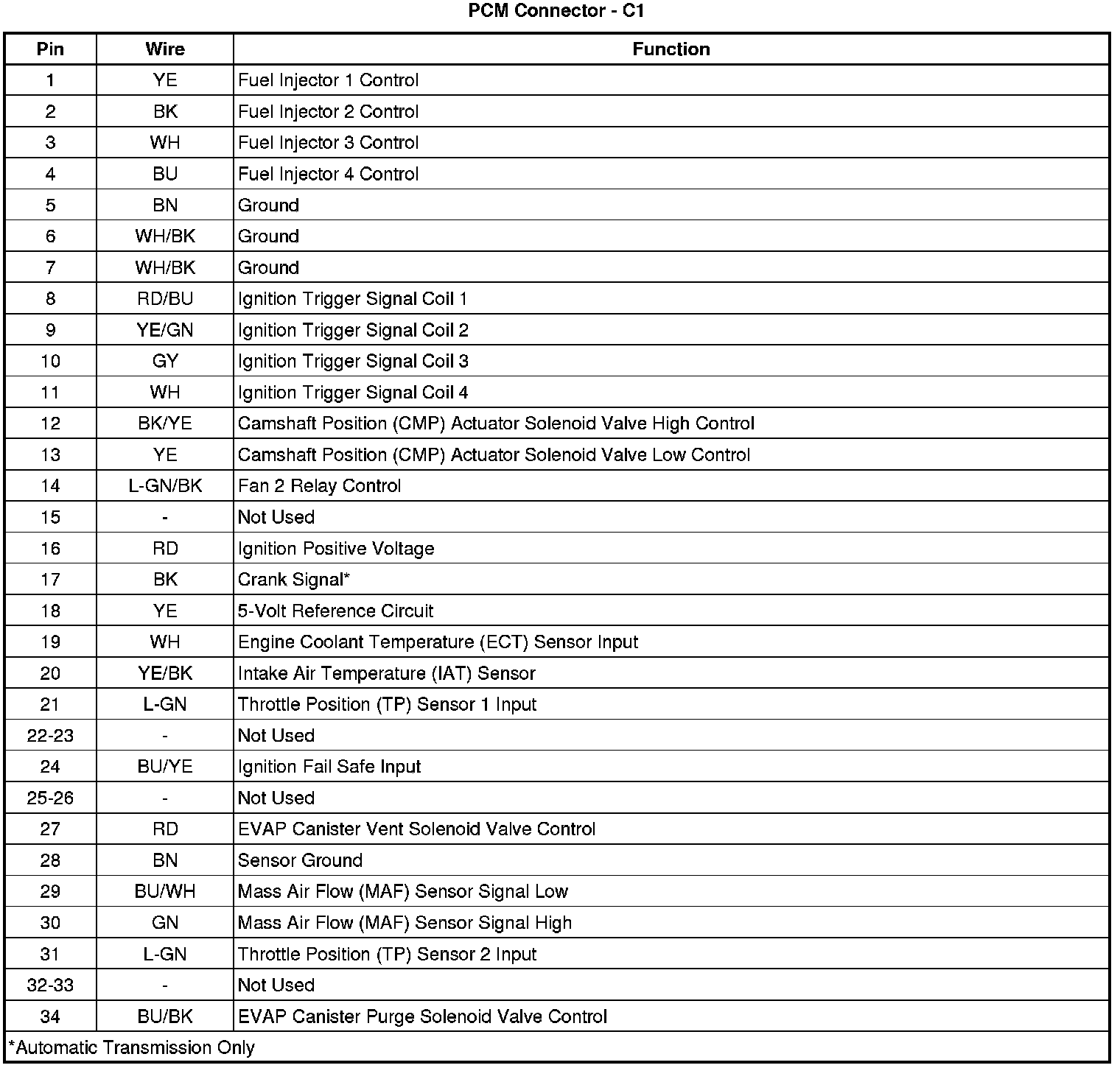 Back View of PCM Connector - C1