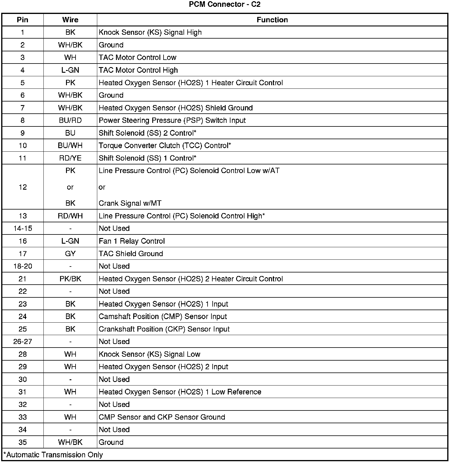 Back View of PCM Connector - C2