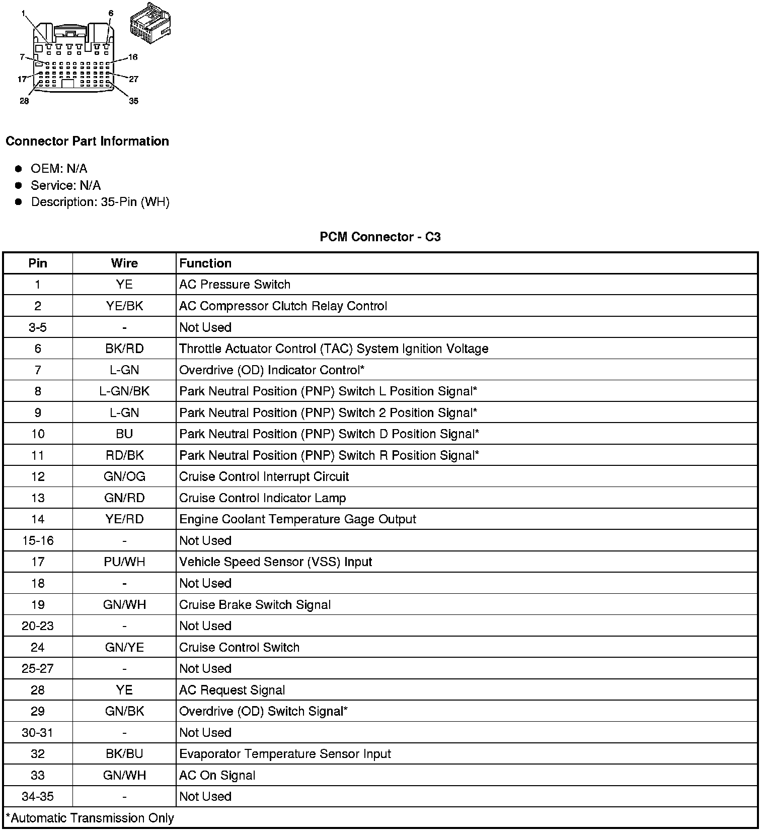 Back View of PCM Connector - C3