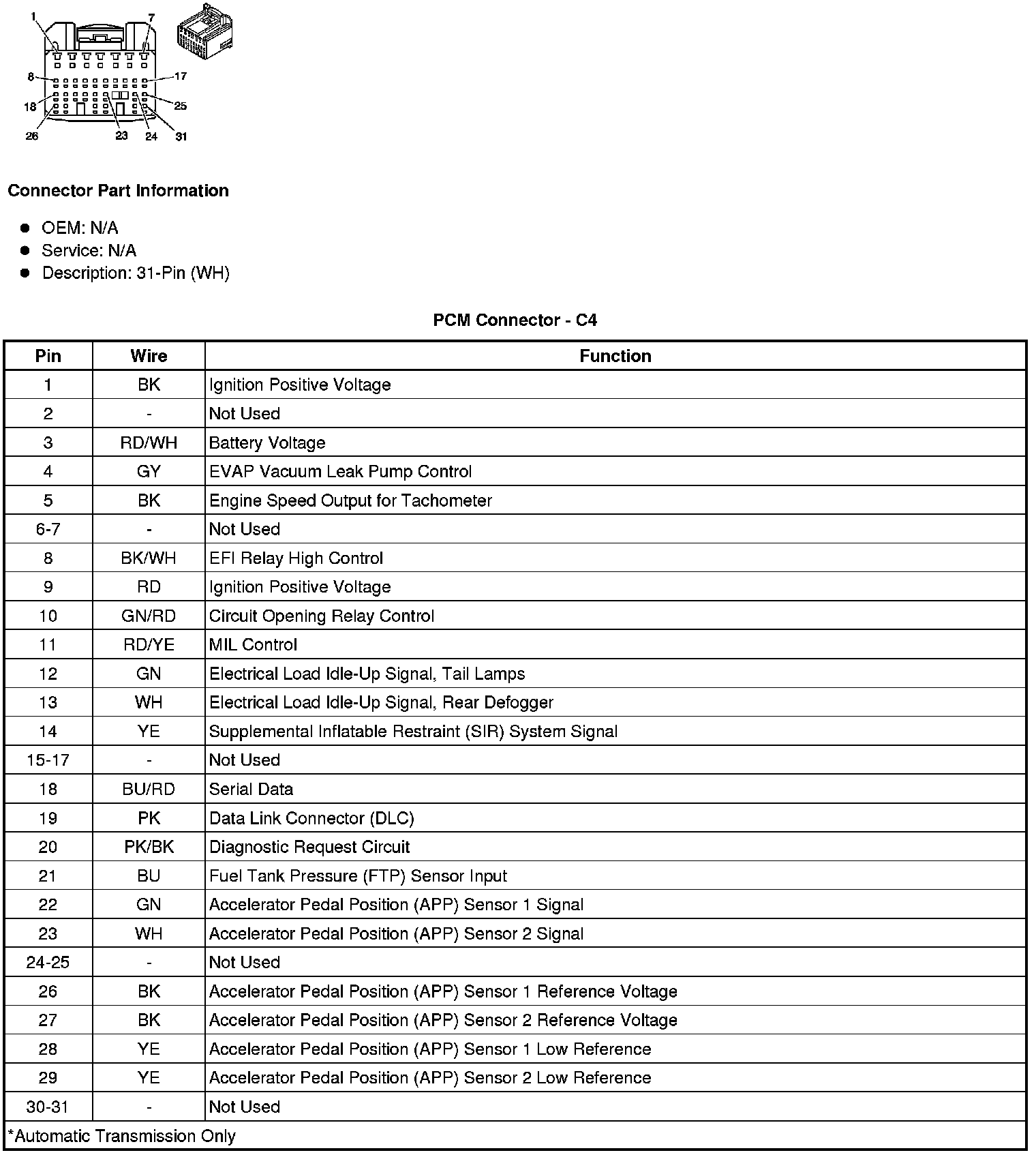 Back View of PCM Connector - C4
