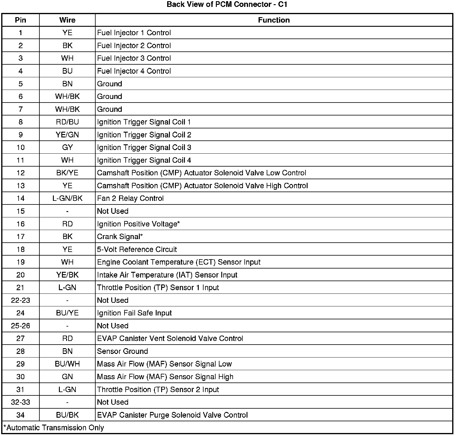 Back View of PCM Connector - C1