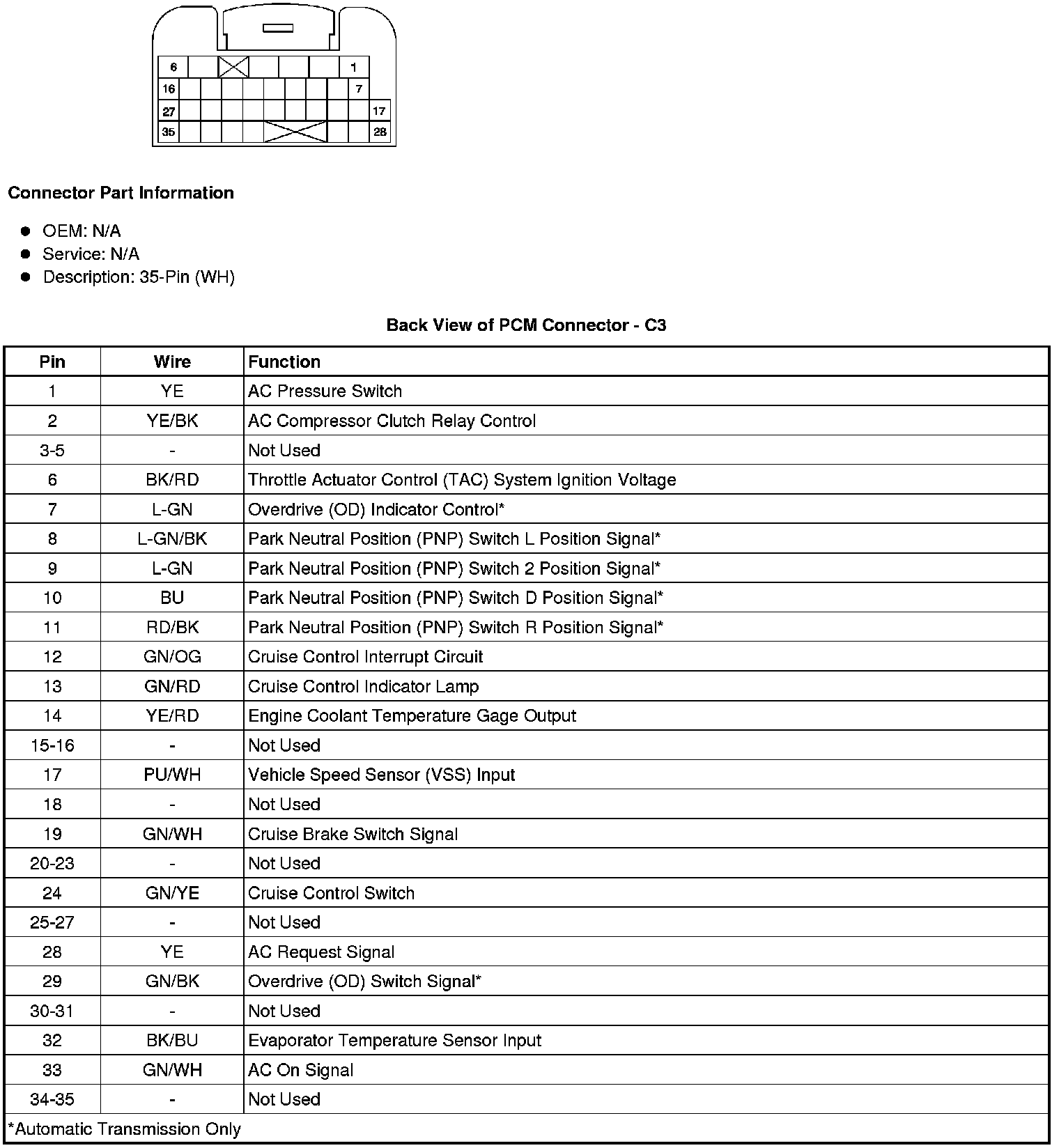 Back View of PCM Connector - C3