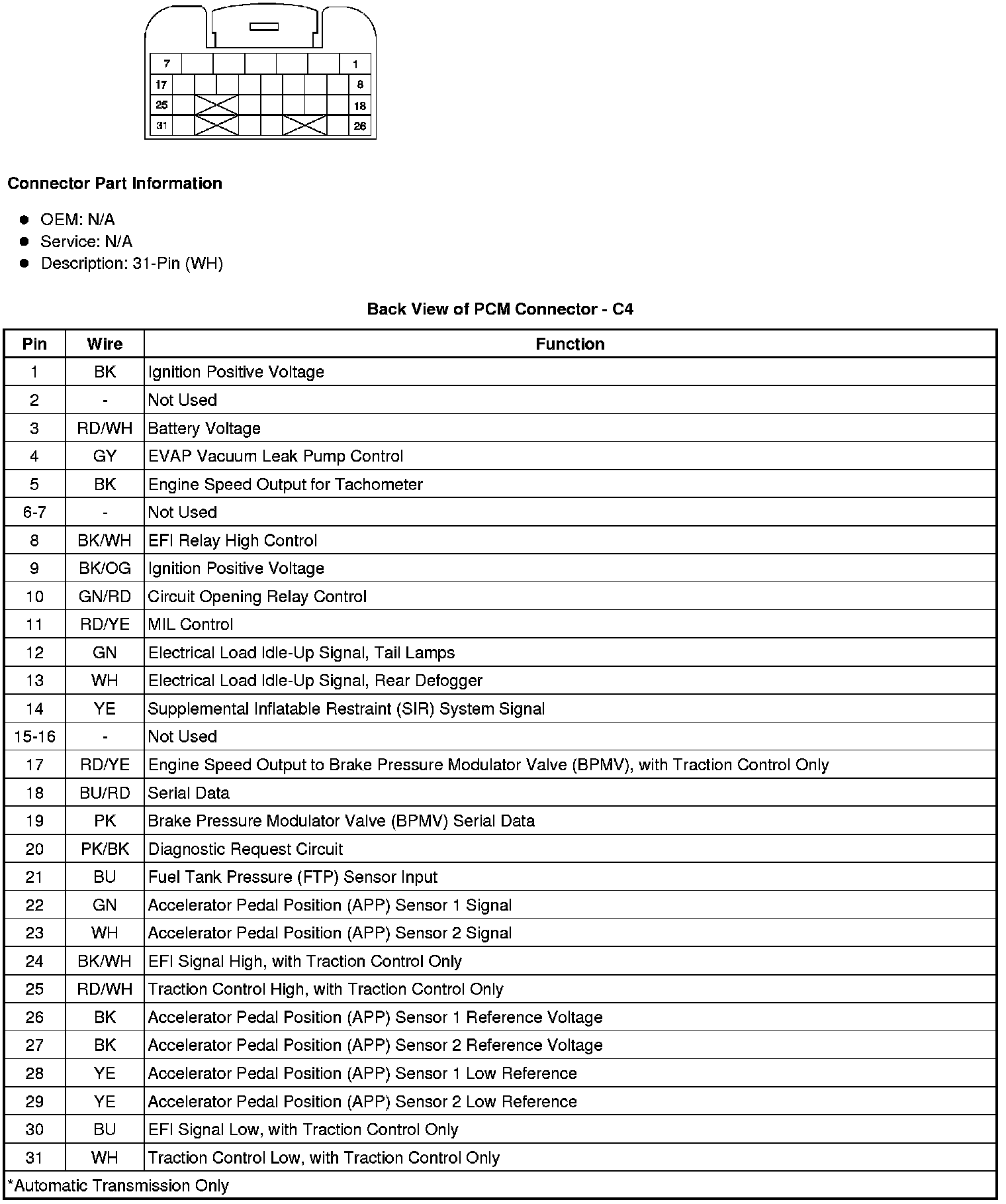Back View of PCM Connector - C4
