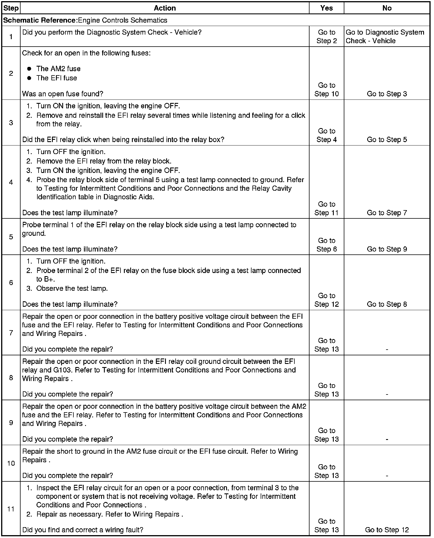 * If the EFI fuse opens during cranking, check for a shorted fuel pump/circuit. The EFI relay supplies current to the circuit opening relay that supplies power the fuel pump. The circuit opening relay is energized during cranking and when reference pulses are detected by the PCM.