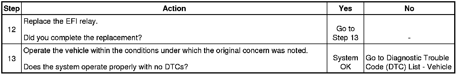 * The EFI relay electrical contacts may be pitted or sticking. Replace the EFI relay, if tapping gently on the relay, or wiggling the relay causes a change in the relay's operation.