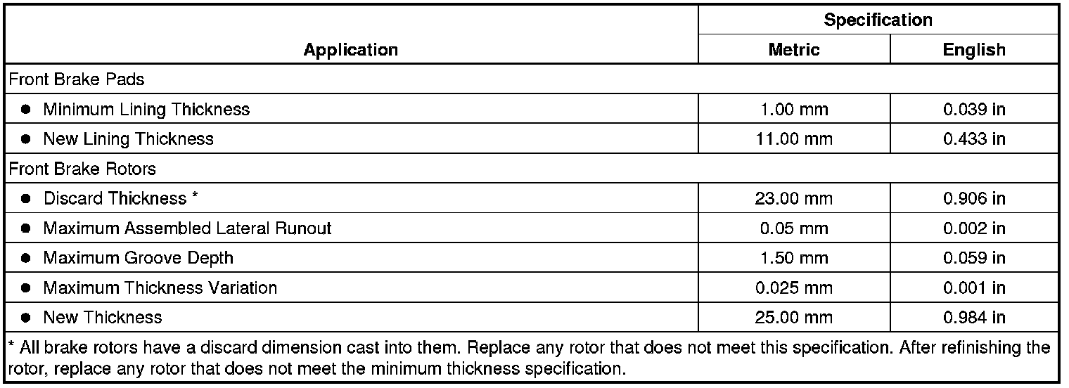 Disc Brake Component Specifications