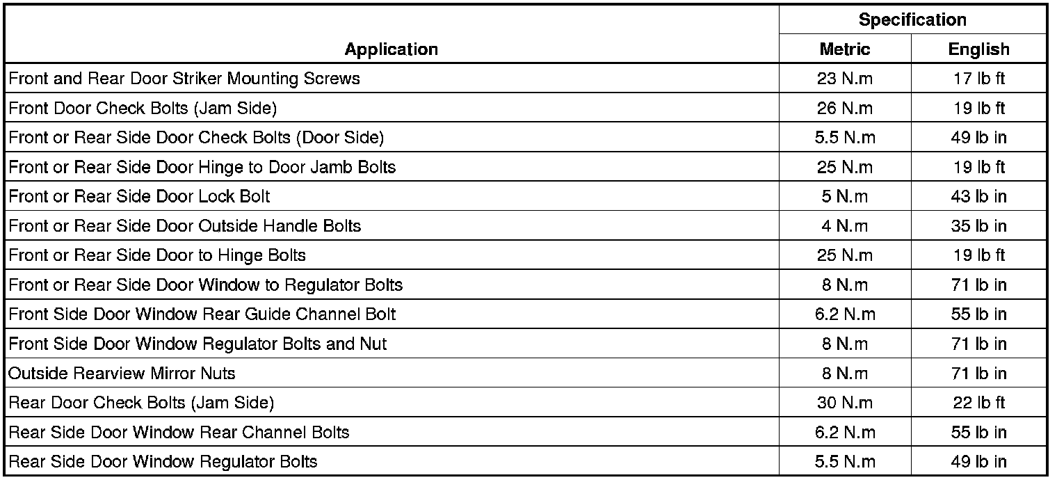 Fastener Tightening Specifications