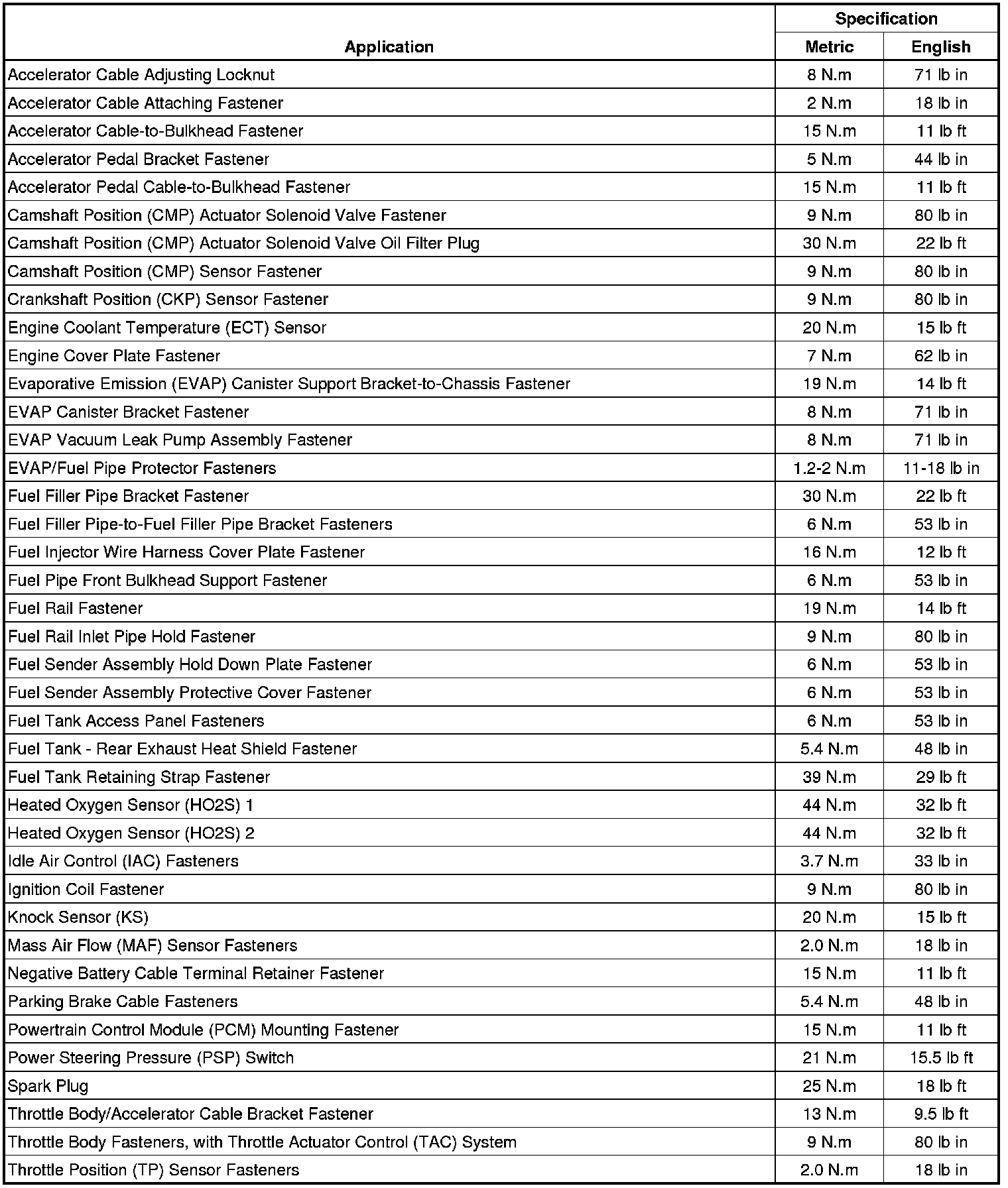 Fastener Tightening Specifications