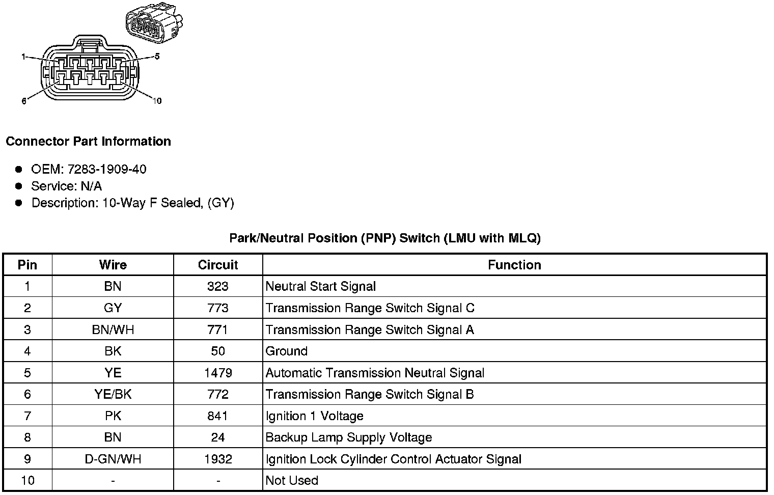Park/Neutral Position (PNP) Switch (LMU with MLQ)