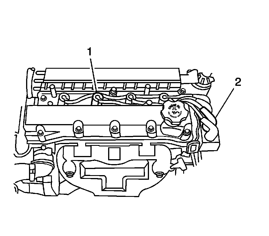 4. Disconnect the spark plug wire from the coil (2).