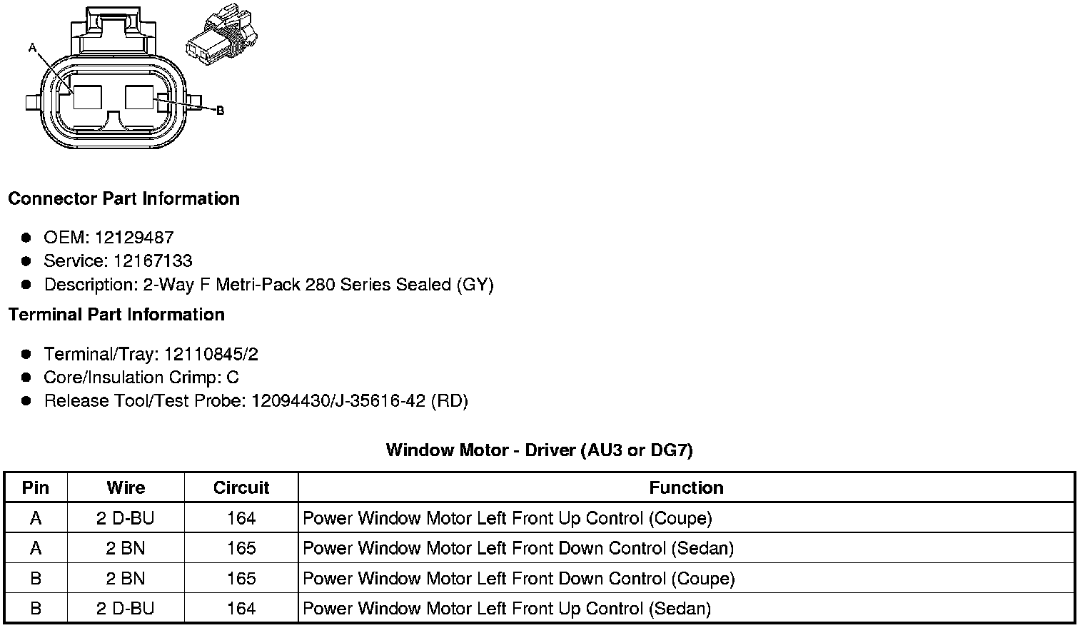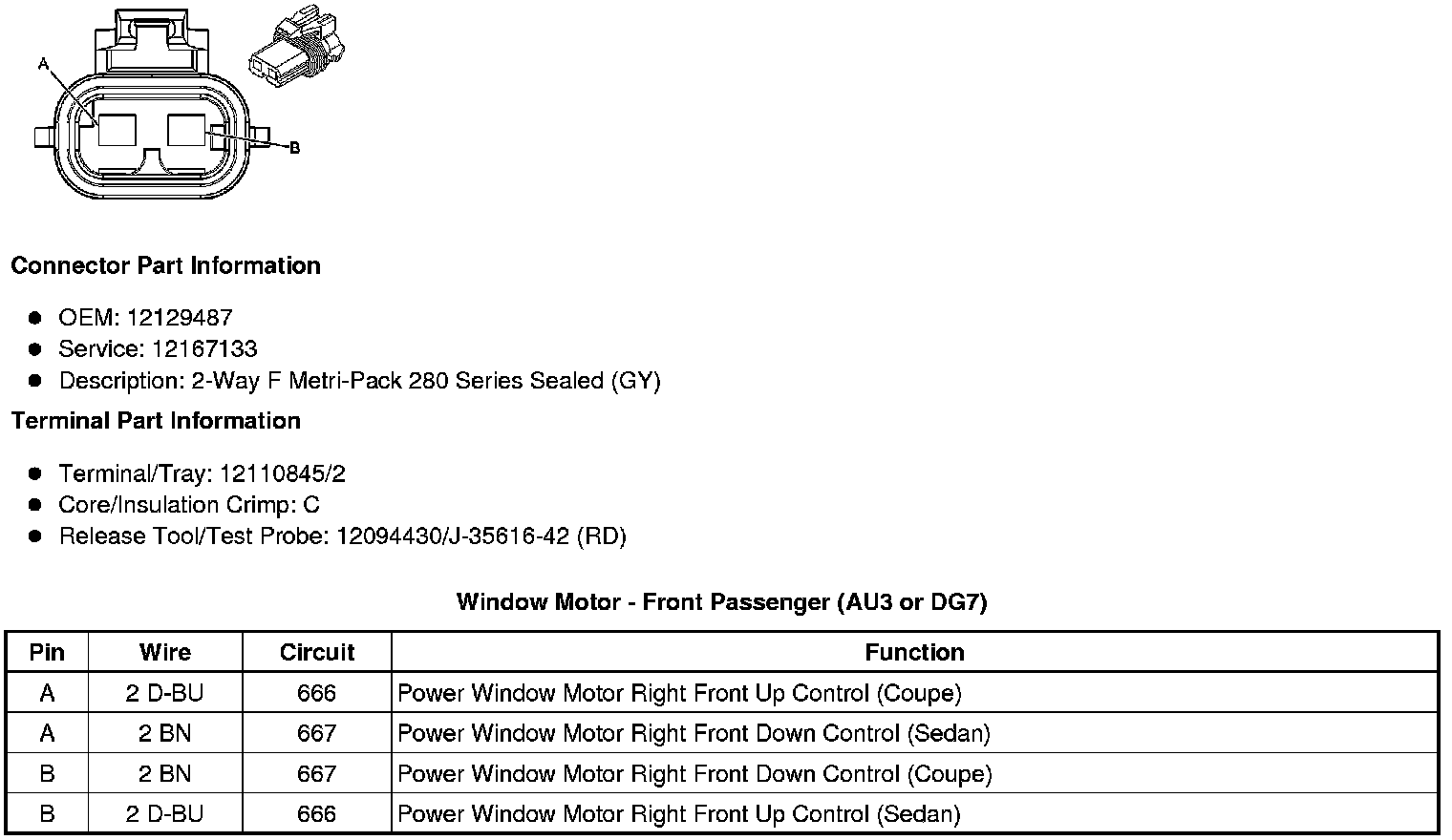 Window Motor - Front Passenger (AU3 or DG7)