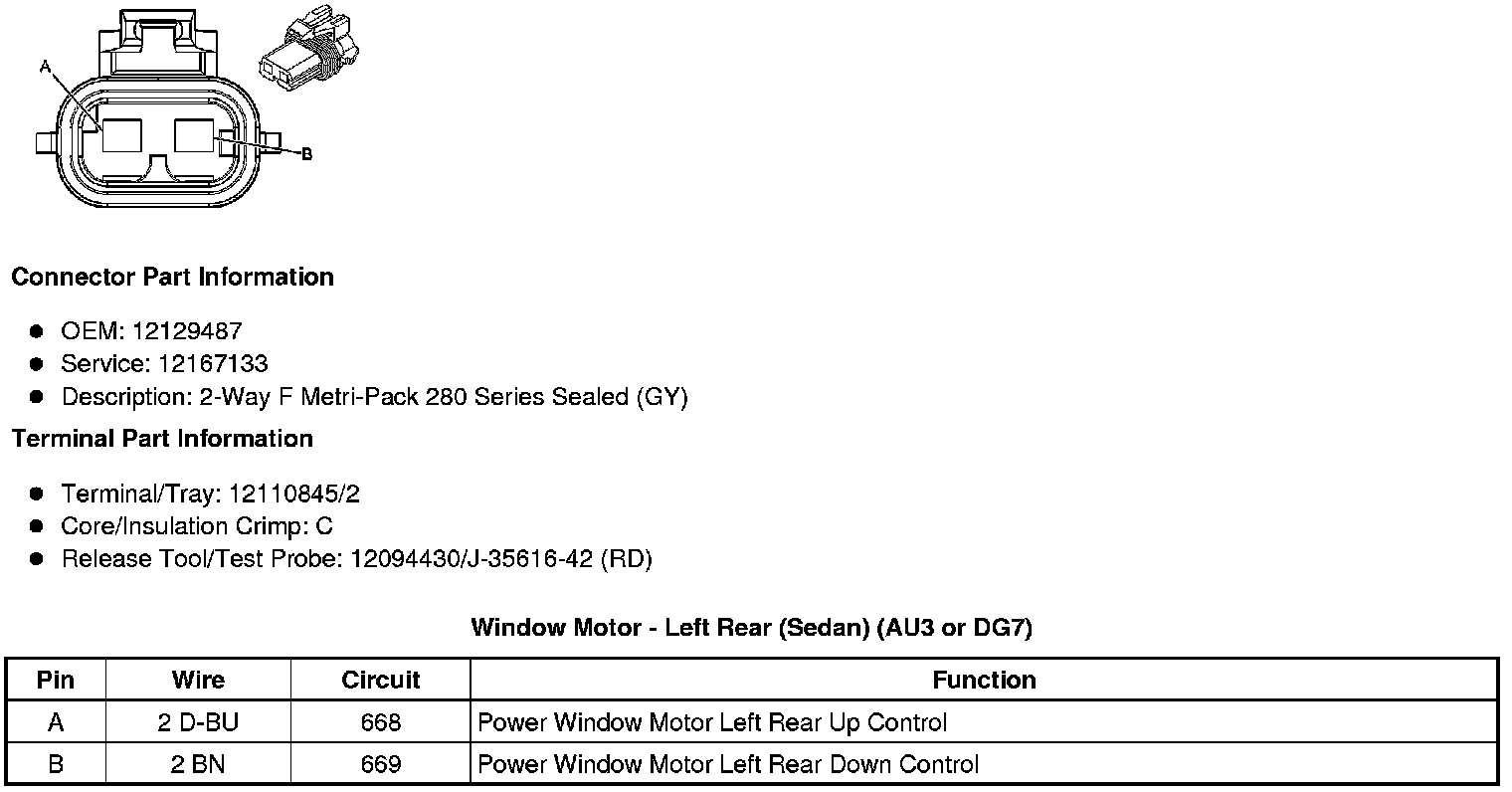 Window Motor - Left Rear (Sedan) (AU3 or DG7)