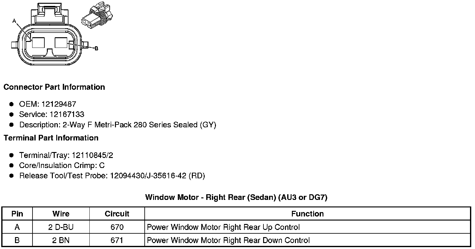 Window Motor - Right Rear (Sedan) (AU3 or DG7)