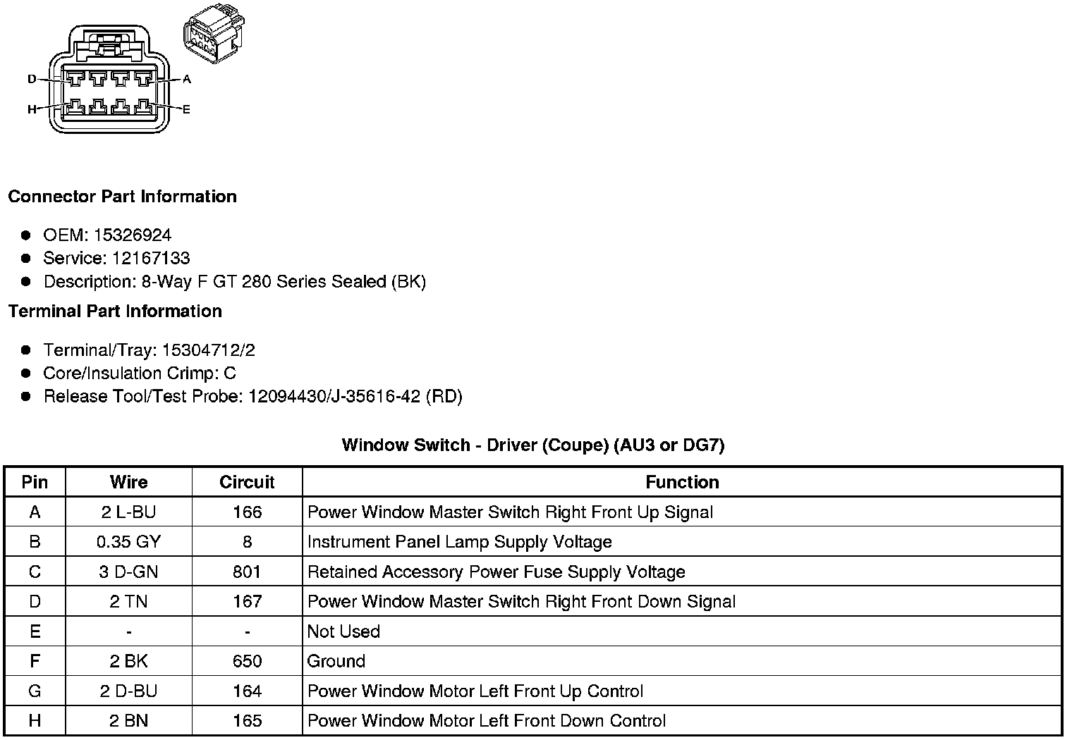 Window Switch - Driver (Coupe) (AU3 or DG7)