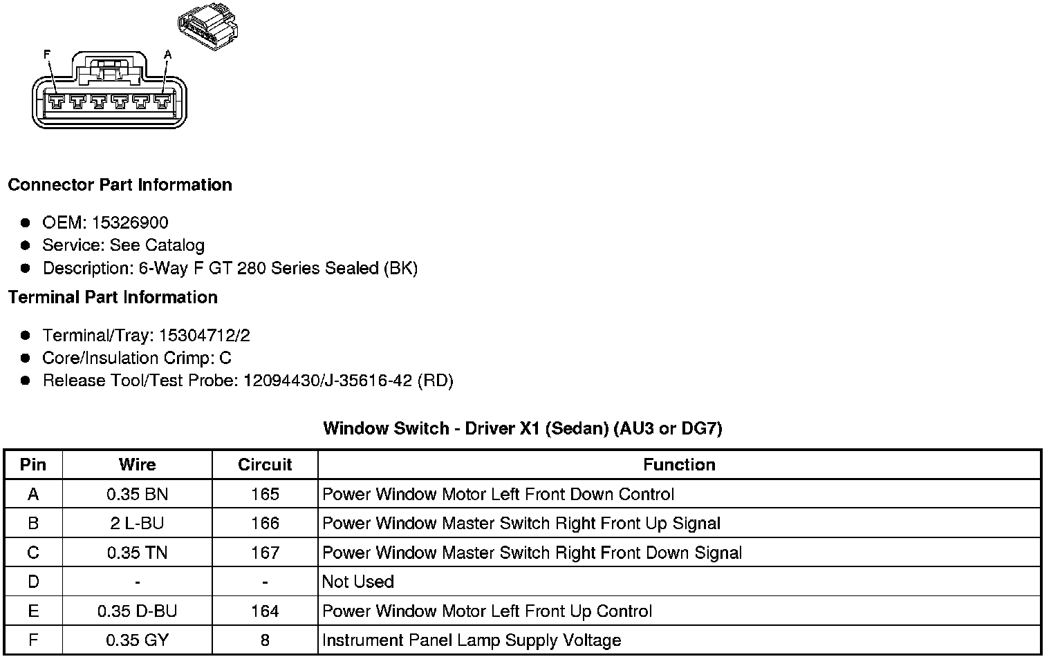 Window Switch - Driver X1 (Sedan) (AU3 or DG7)